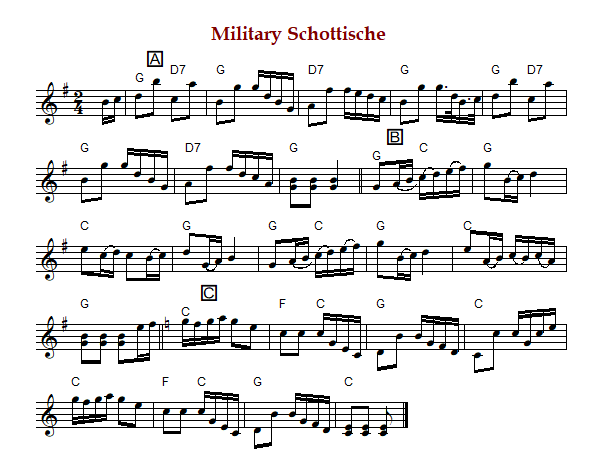The title "Military Schottische", rather than being the name of the tune, is the