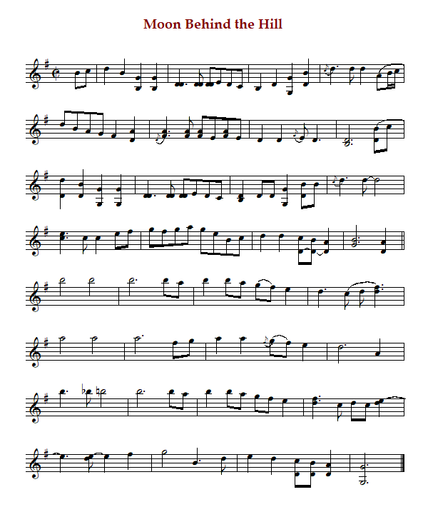 "Moon Behind the Hill", also known as "Moon Behind the Mountain" is an American reel in cut time