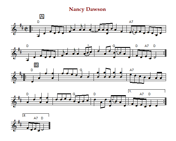 "Nancy Dawson", also known as "Nancy Dalton" is an old-time breakdown in D Major.