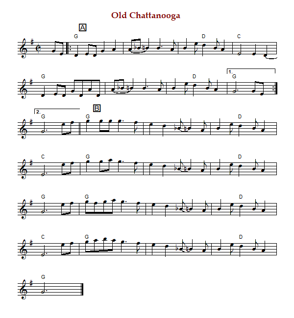 "Old Chattanooga", also known as "Chattanooga" is an American reel in cut time and G Major.