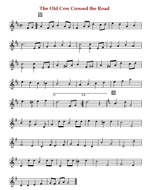 Road/The Old Cow She Crossed the Road" or "Pop Weir Tune" is an American Polka in 4/4 time
