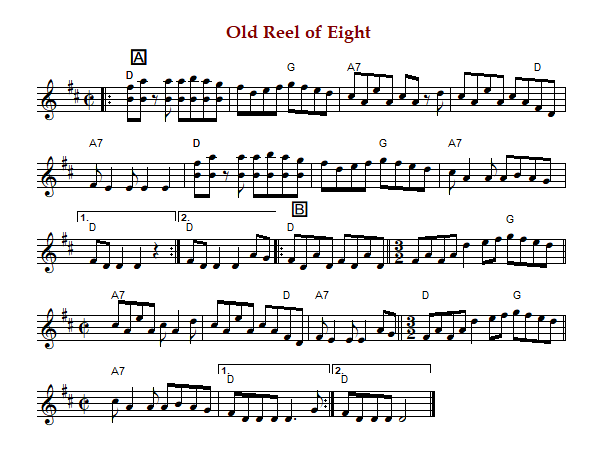 "Old Reel of Eight" is a Canadian reel in cut time and D Major.