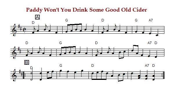 "Paddy Won't You Drink Some Cider", also known as "Paddy Won't You Drink Some Good Old Cider",