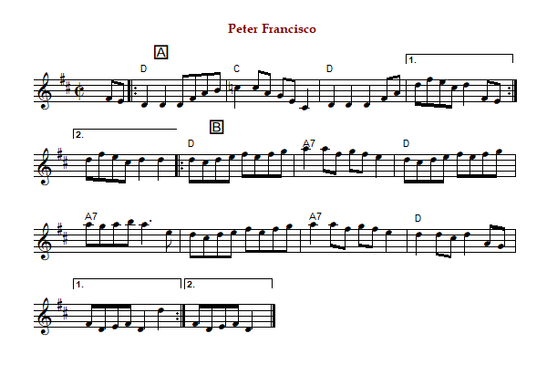 "Peter Francisco" is an American reel in 2/4 time and D Mixolydian ('A' part) &