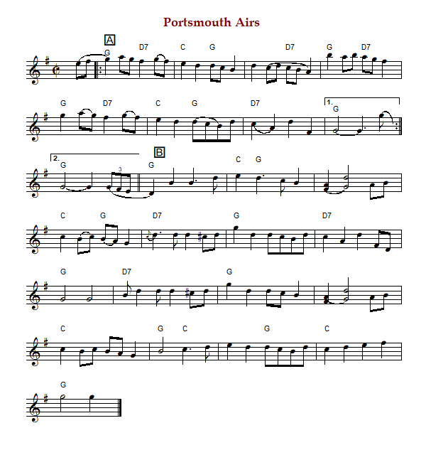 "Portsmouth Airs" is an old-time breakdown in cut time and G Major.