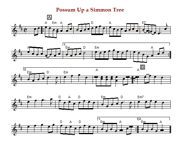 "Possum up a Simmon Tree" is an American reel in cut time and