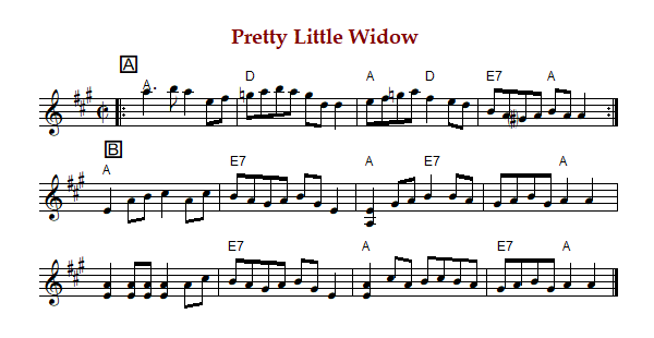 "Pretty Little Widow" is an American reel in cut time and A Major (Phillips),