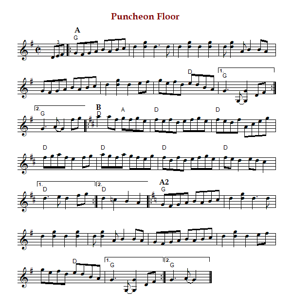 "Puncheon Floor" is an old-time breakdown known in Arkansas and Tennessee in G Major or