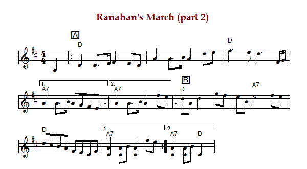 "Ranahan's March (part 2)" is an American march in 4/4 time and D Major.