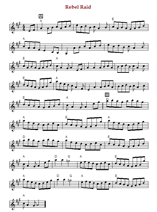 "The Rebel Raid" is an Old-Time breakdown in A Major. It is usually played in AEae