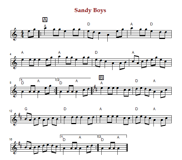 "Sandy Boys" is a 19th century minstrel tune from Virginia.