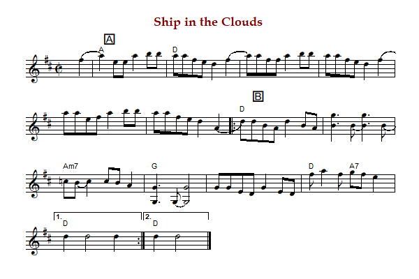 "Ship in the Clouds" is an American reel in cut time and D Major ('A' part) /