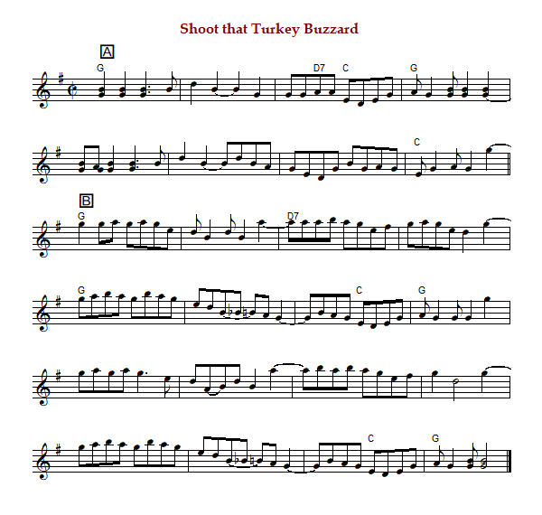 "Shoot that Turkey Buzzard", also known as "Turkey Buzzard" is an American reel in cut time and G Major.