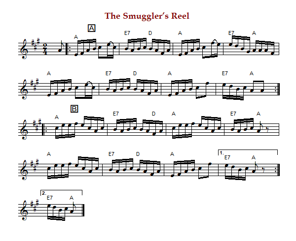 "The Smuggler’s Reel" is an American reel in 2/4 time and A Major.