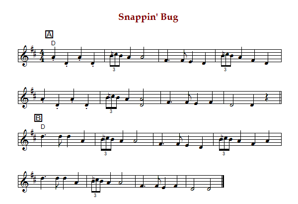 "Snappin' Bug" is an American reel in 4/4 time and D major.