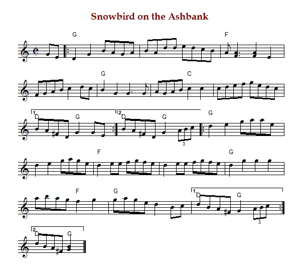 Some versions of "Snowbird on the Ashbank" are reminiscent of "Paddy on the