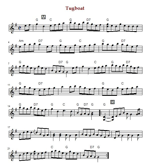 "Tugboat" is an old time breakdown known in West Virginia, Virginia, Nebraska, Oklahoma and