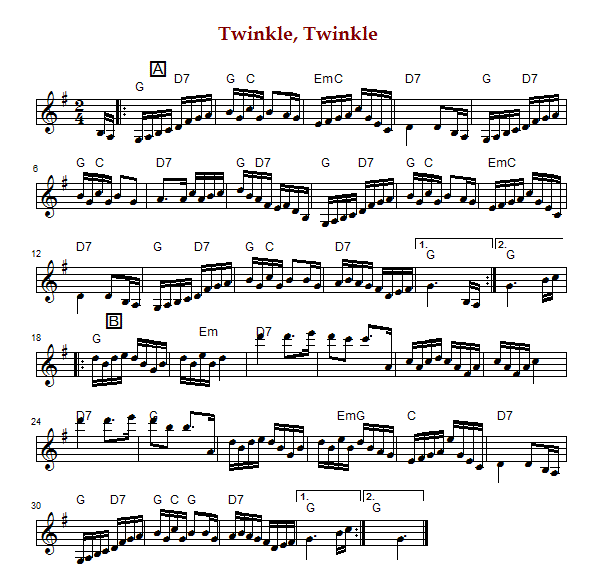 Star, Twinkle, Twinkle" is an old-time, bluegrass or Texas style Breakdown