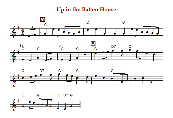 "Up in the Batten House" is an American reel in G major and 4/4 time.