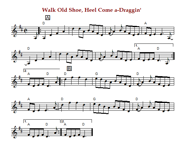 "Walk Old Shoe, Heel Come a-Draggin'" is an American reel in D Major.