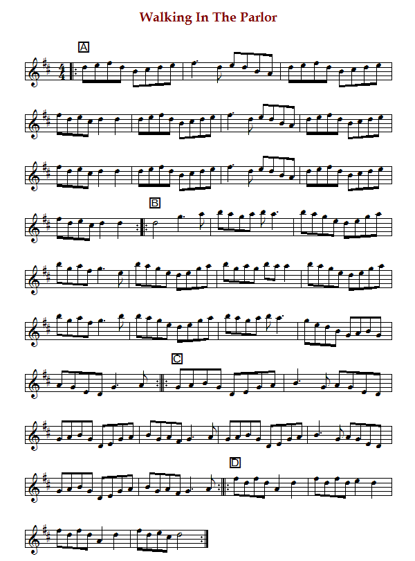 Parlor" titled tunes. The tune was known as "Walking in the Parlor"