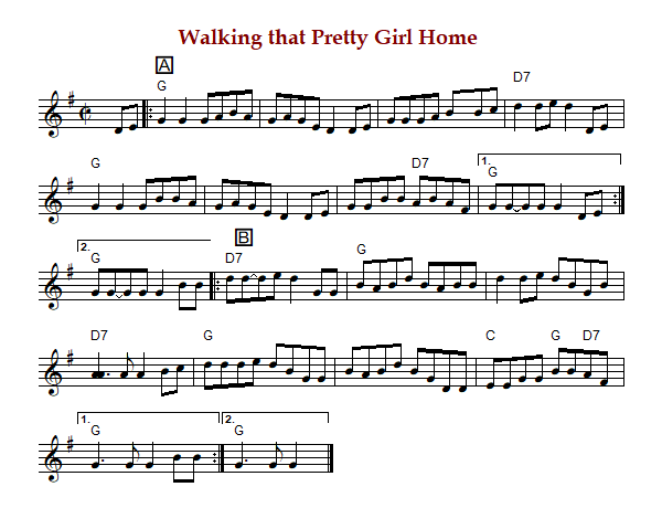 "Walking that Pretty Girl Home" is an American reel in cut time in G Major.