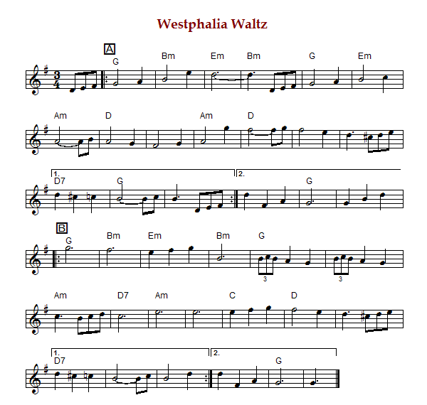 "Westphalia Waltz" is an American and Canadian waltz in 3/4 time and G Major.